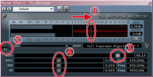 ³Æ¥È¥é¥Ã¥¯¤Î¥Ü¥ê¥å¡¼¥à¤ò°ìΧ²¼¤²¤Æ¤«¤é¡¢TLs Maximizer¾å¤ÇÄ´Àá¤ò¹Ô¤Ã¤Æ¤«¤é½ÐÎϤ·¤¿¤é¤³¤¦¤Ê¤ë¡£