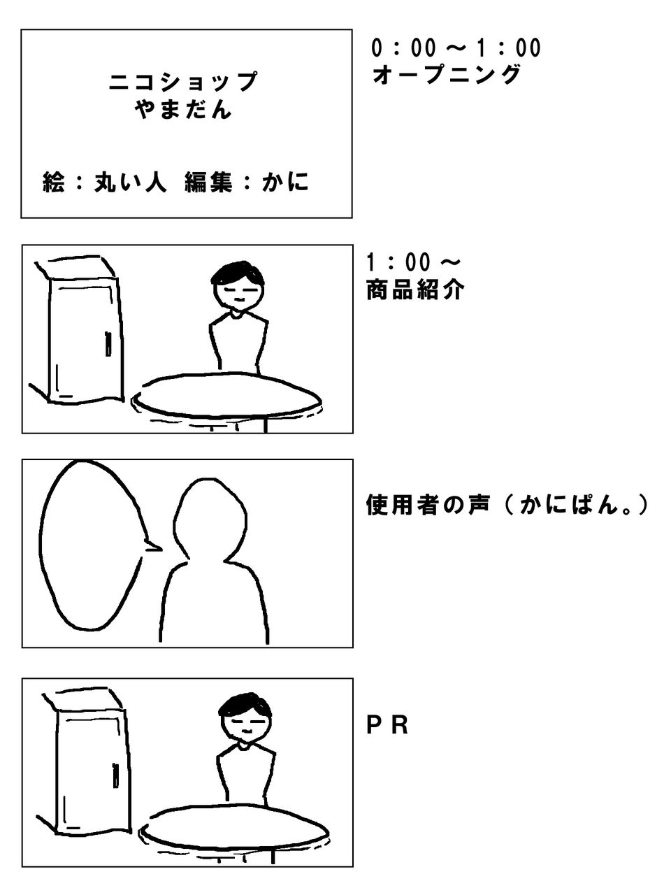 コンテにも「絵:丸い人」とありますが、当初、丸い人さんに静止画を描いてもらうという計画もありました。