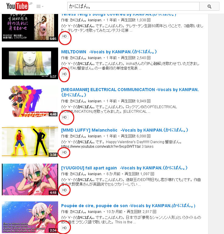 こういう風に、動画の検索結果ページの説明文の近くに「HD」とあったら、