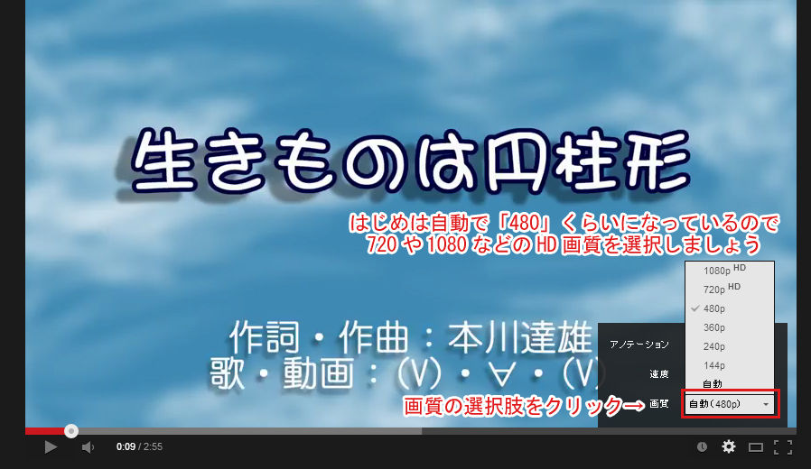 いつか急にそういうことになるかもしれないので、皆さんにも、Youtubeでの高画質動画の見方を