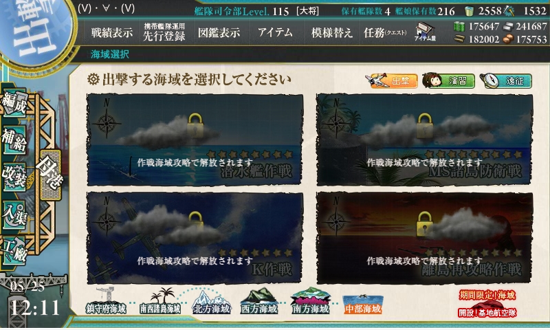 となると、私の春イベはここで終了として、キラの剥がれた艦のキラ付けと、資源回復に努めたい。