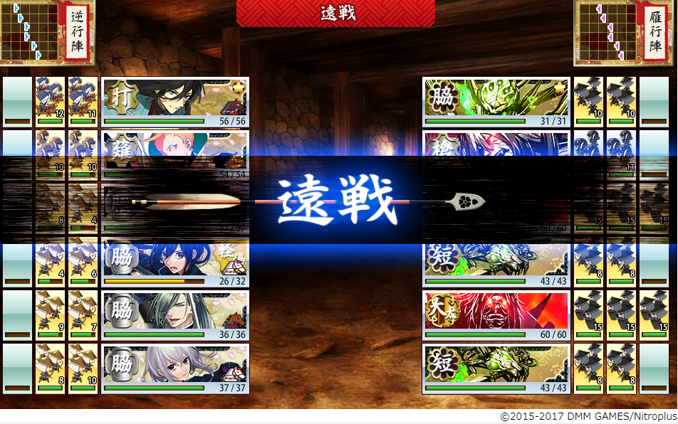 敵が刀装をつけていないので、こっちの弓と石で白刃戦前にボコボコにできて楽勝でした。