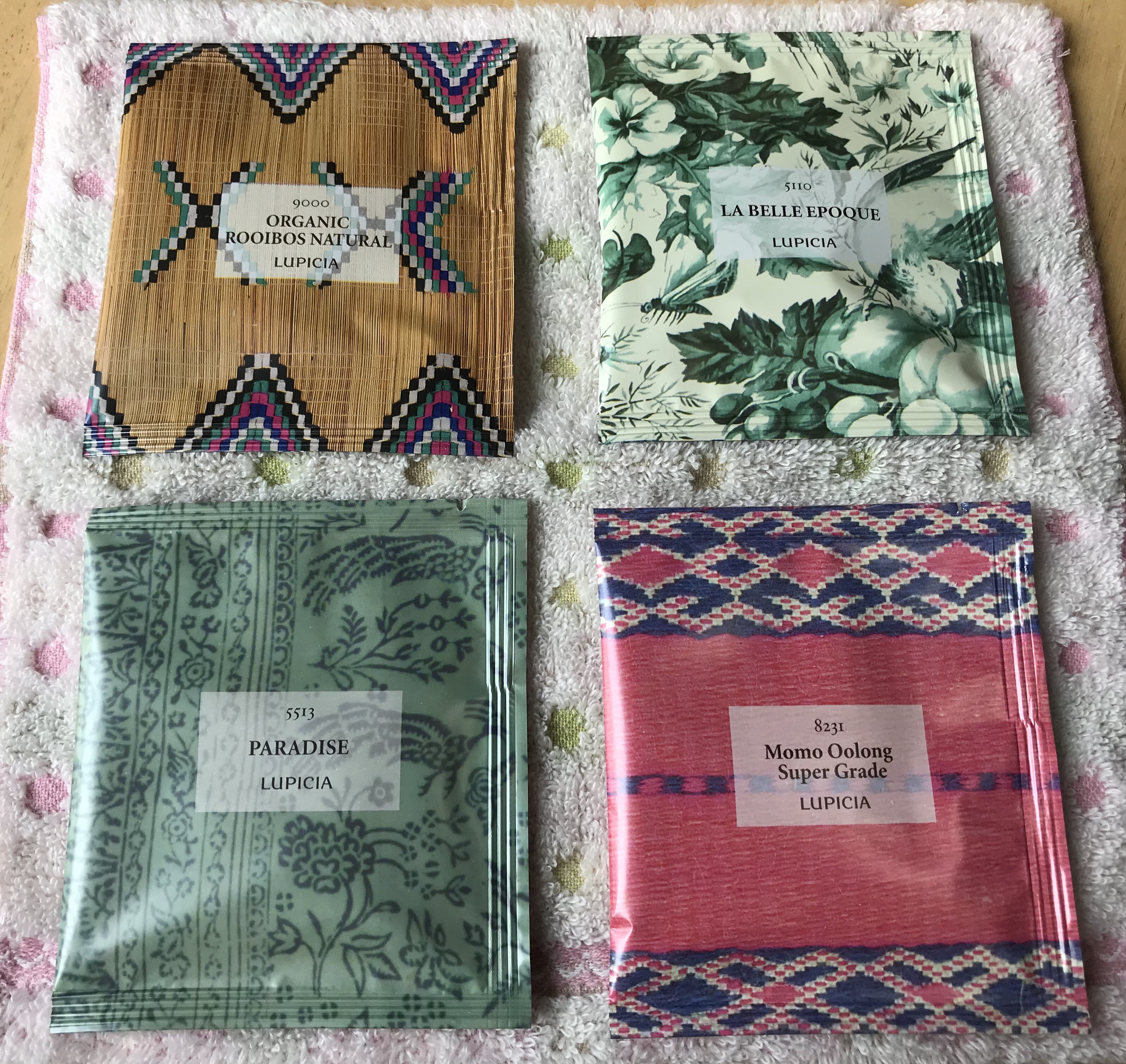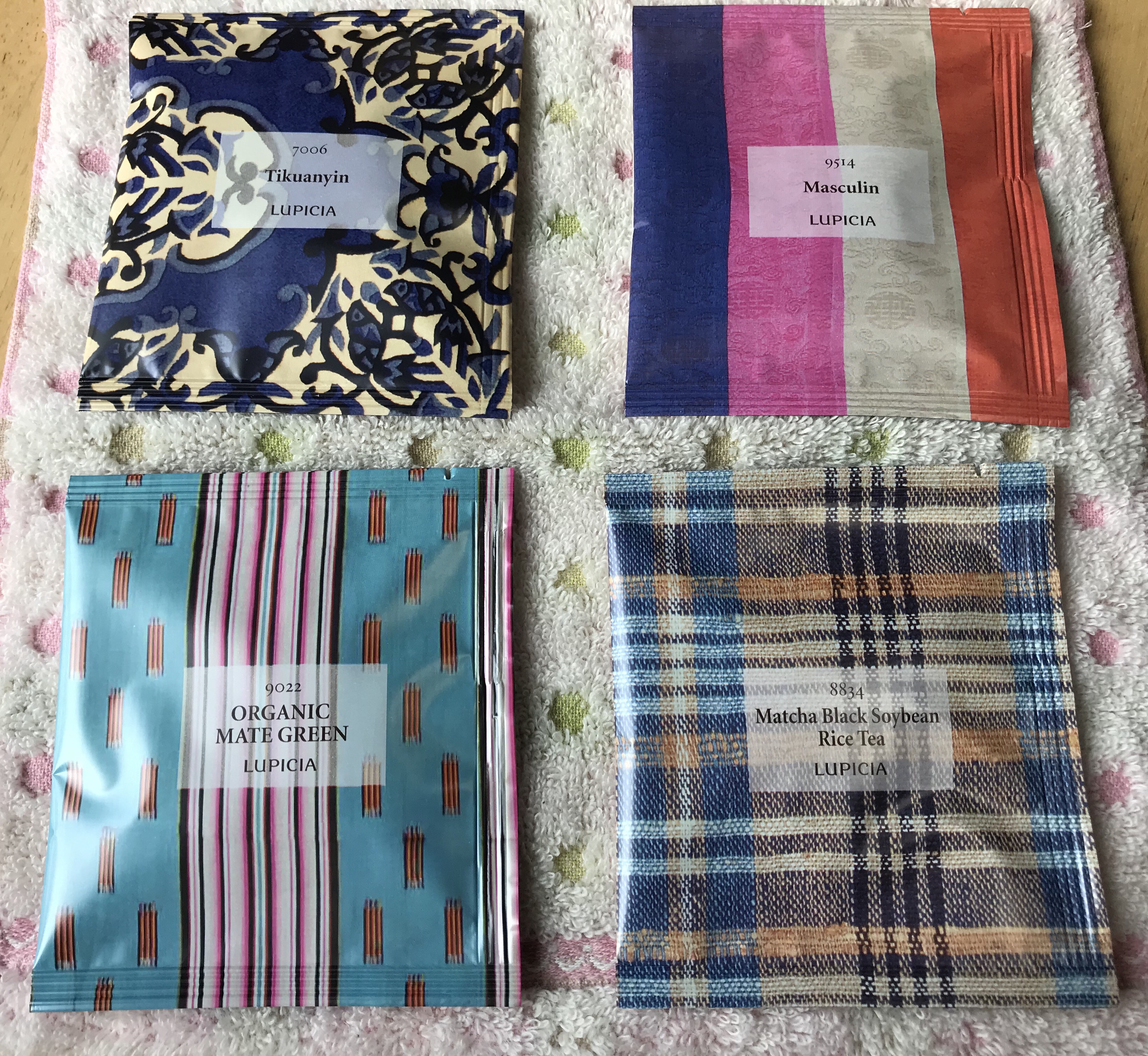 お茶も美味しいけれど、この箱と個装の袋、全部キレイにコレクションしたくなる可愛さなので
