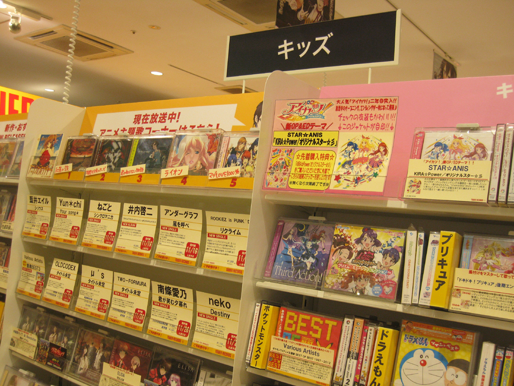 アニメに関しては、このように、お店の中の一区画にアニメ商品を置くという形だけでなく、