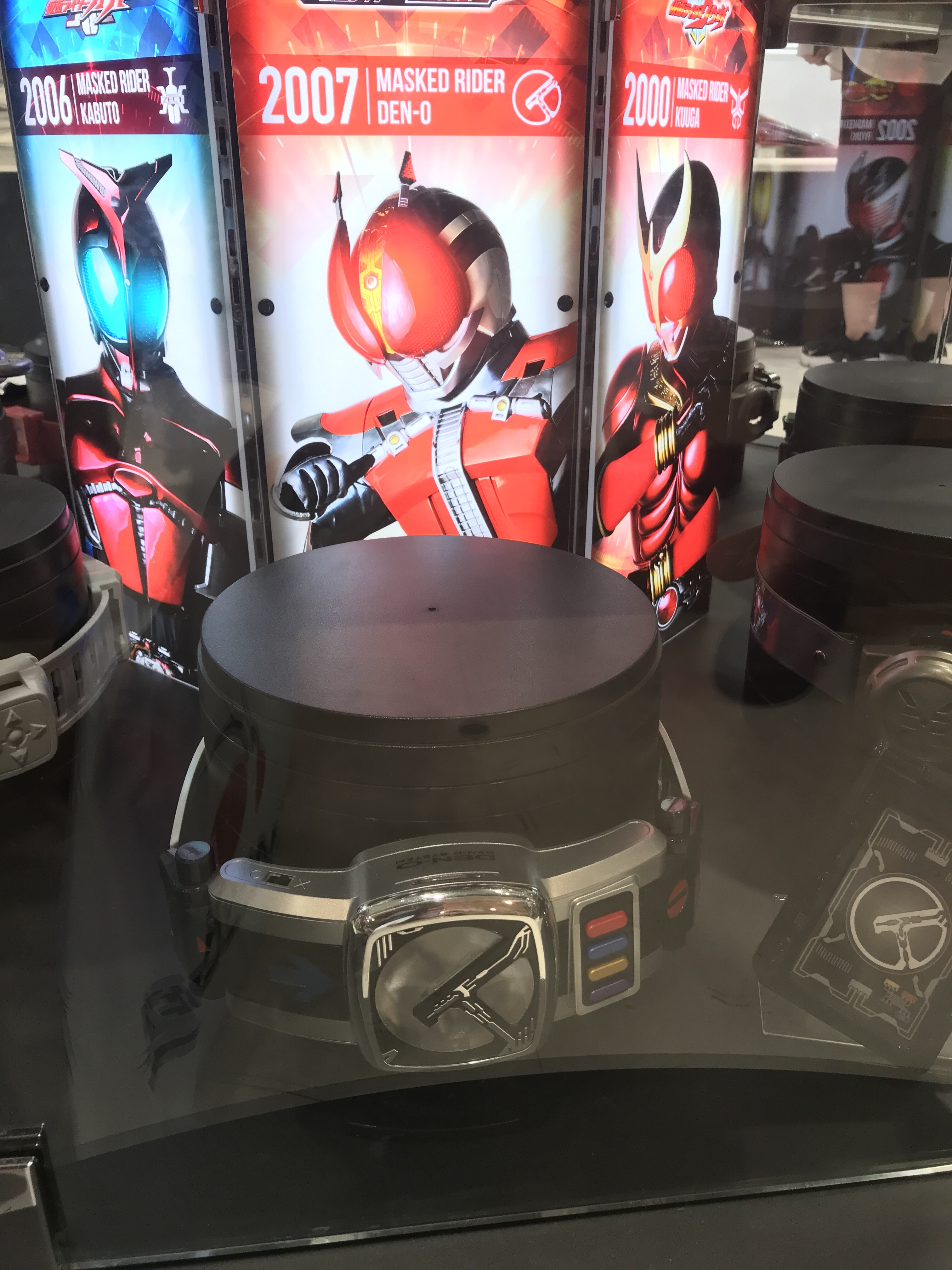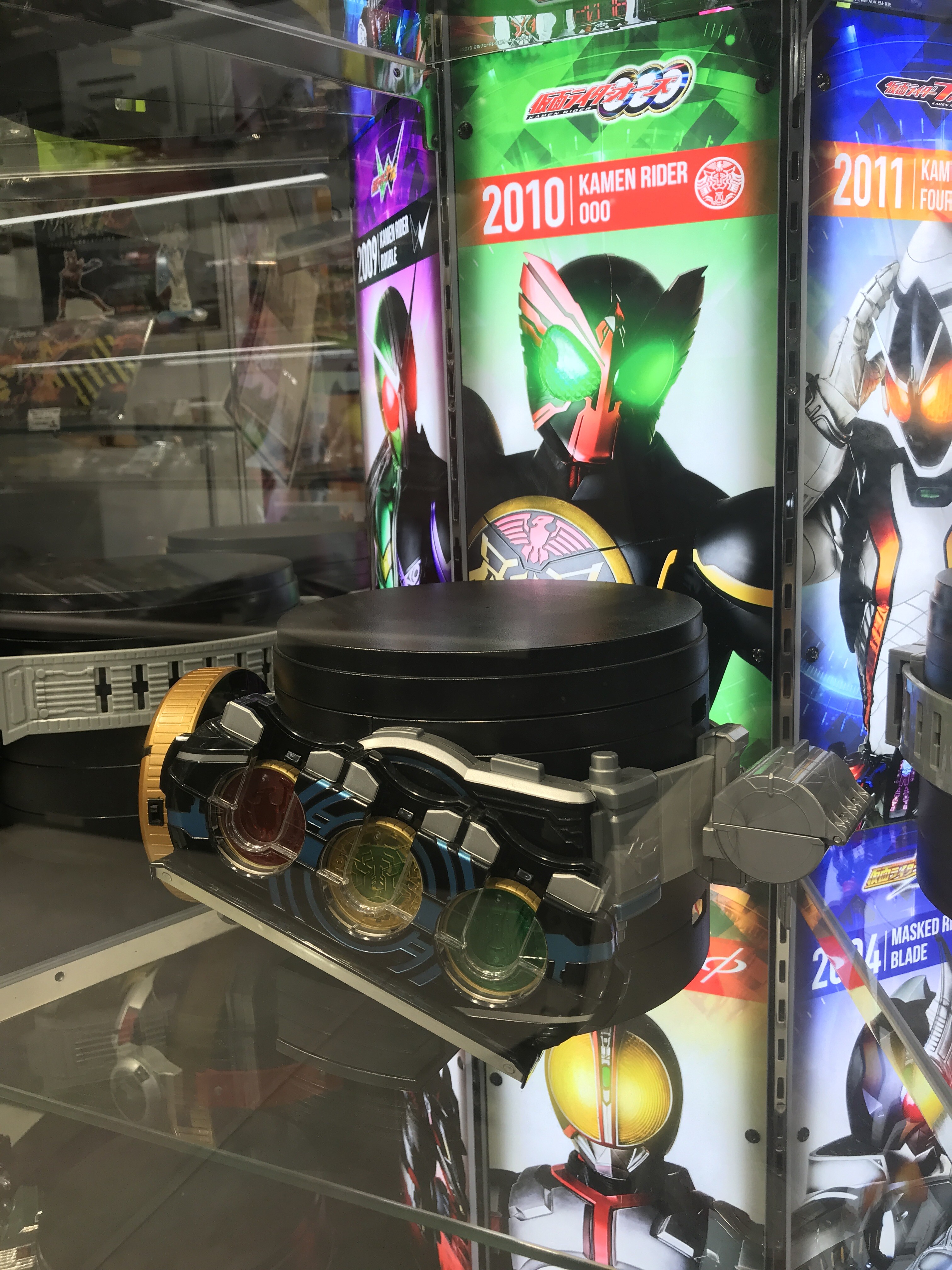 以下は帰りに寄ったときに店内展示を撮影した変身ベルト。これは店の外からは撮れない。