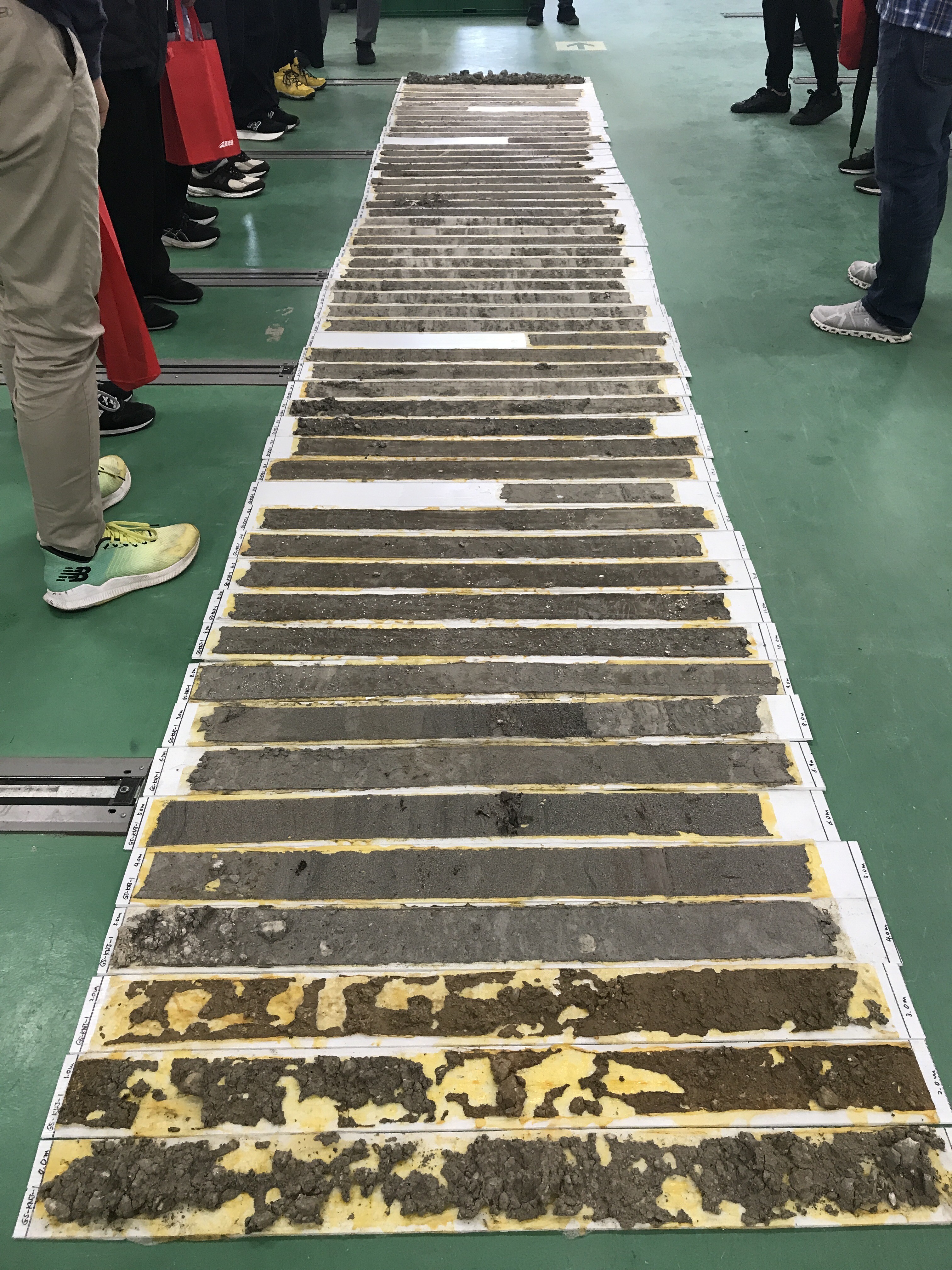 仮に350m掘った場合、1mずつの筒に切り分けるので、資料は350本になるわけだ。