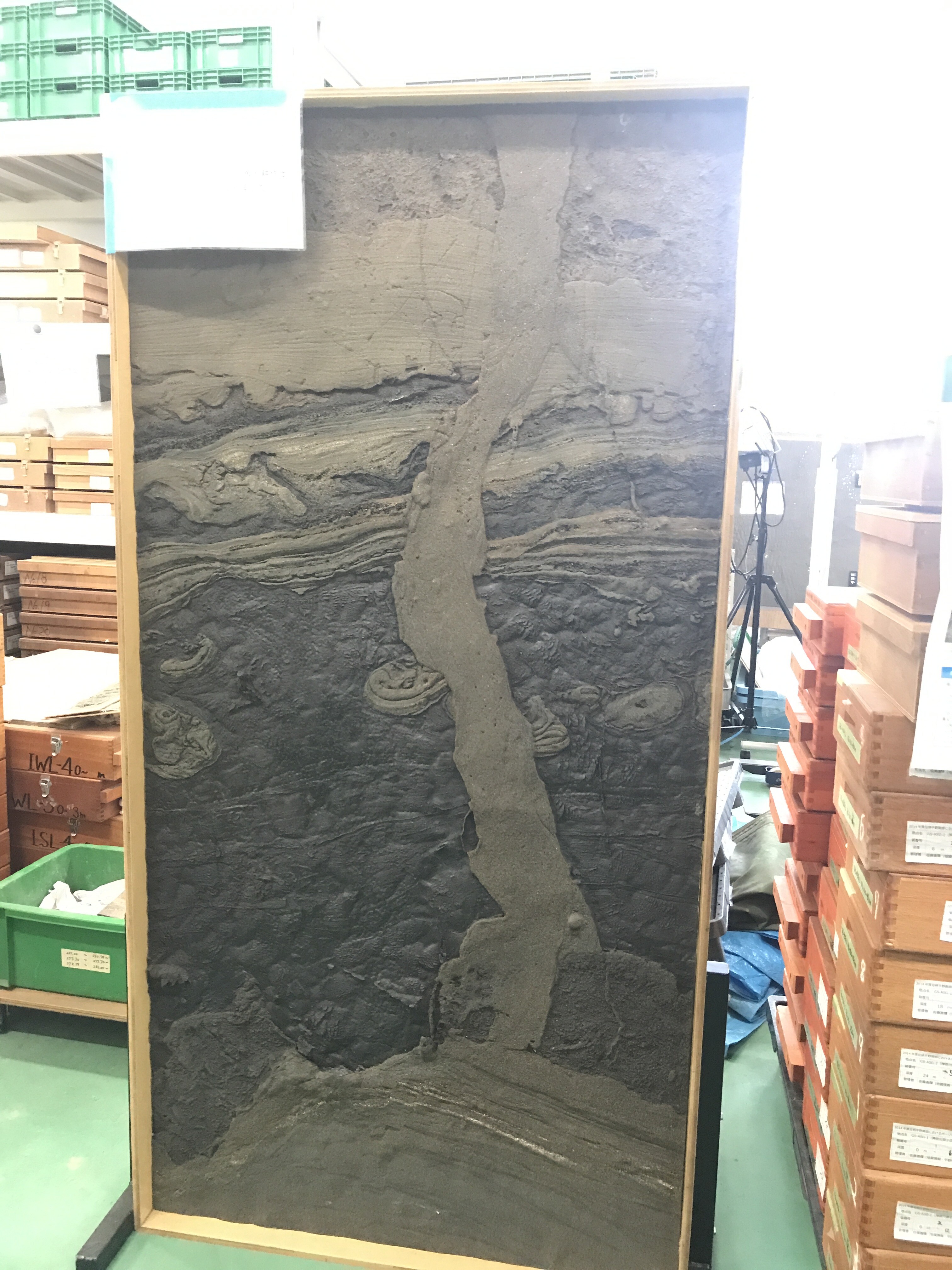 建物は大きく分けて二つあり、片方は今まさに研究しているボーリングコアが並んでいる倉庫兼ラボといった趣。