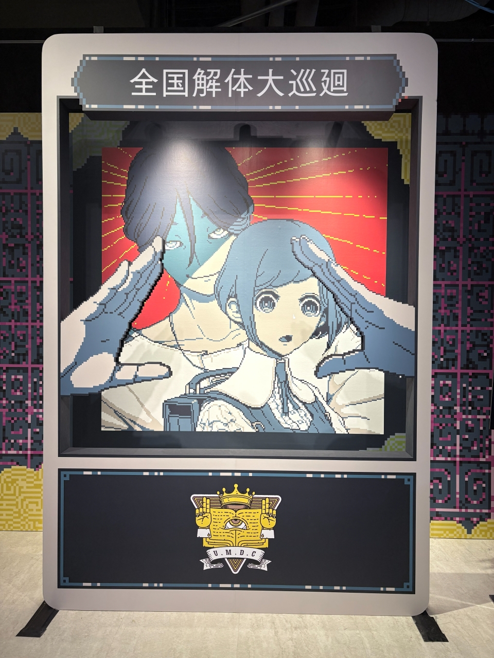 お祝いパネルの先でキャラクターが徹底解体されていた。