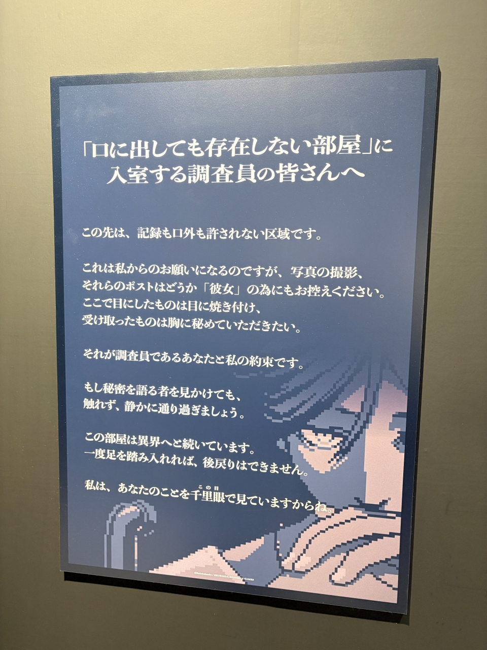 口に出しても存在しない部屋の中の展示内容に関しては、テキストのみだとしても具体的に書きたくないのでほかは全部伏せるけど、