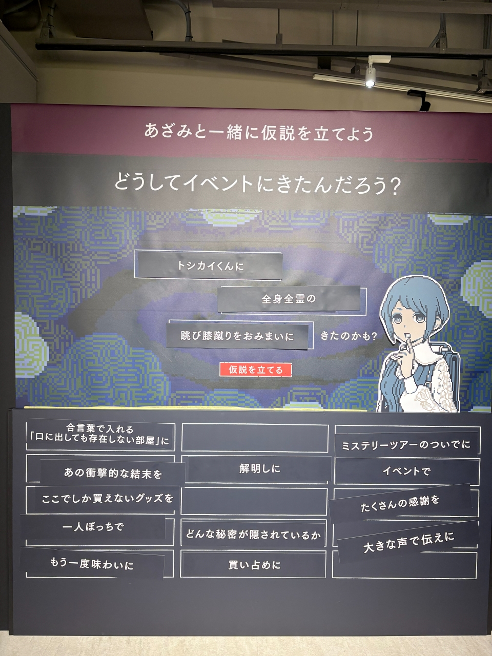こちらの仮説パネルでは、実際に選択肢を自分で取ったり外したりして構文を組み立て、記念撮影が可能。