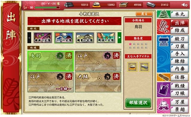 これで、そのフィールドに再度出陣すると、1戦目が検非違使戦、という寸法のようだ。